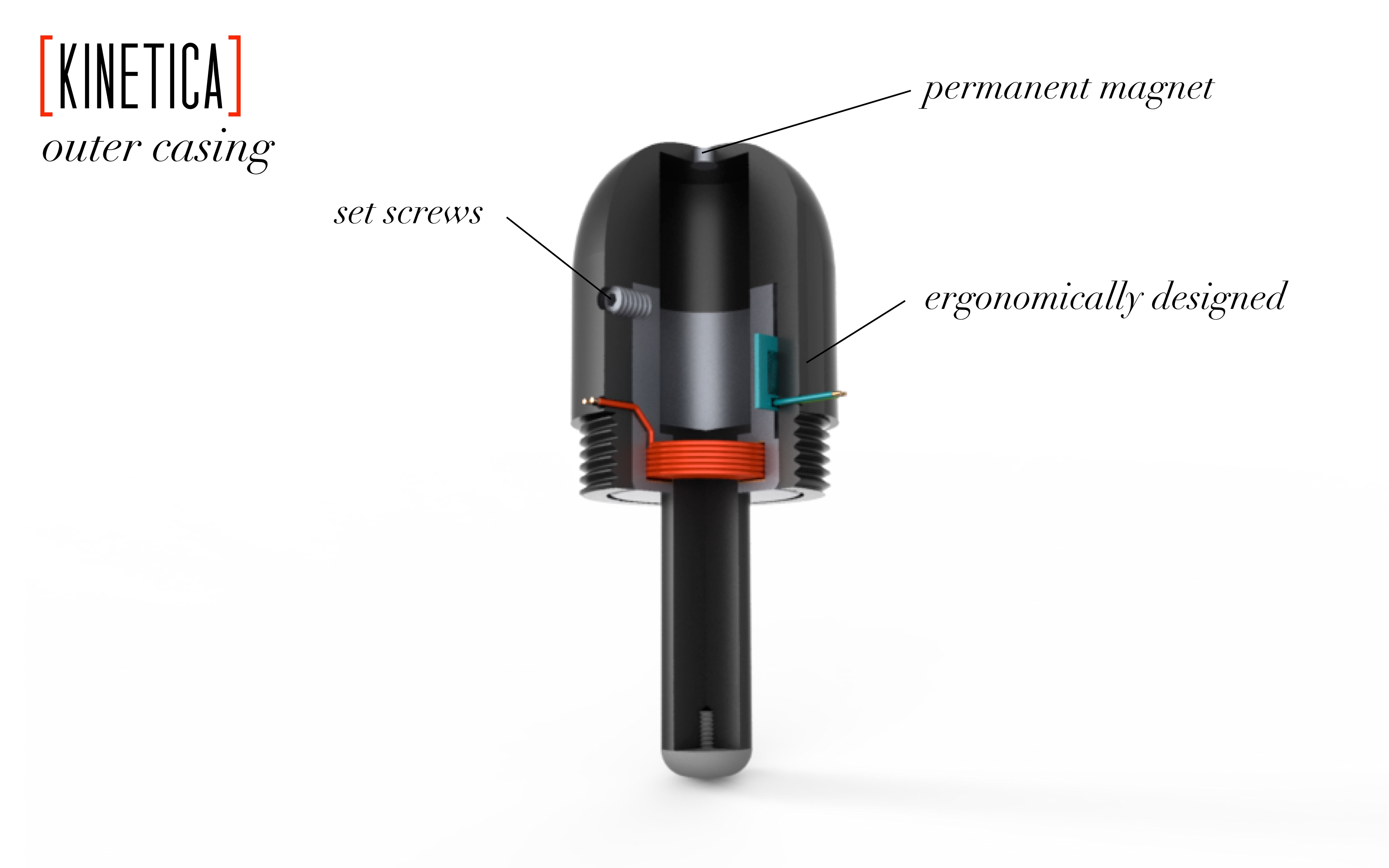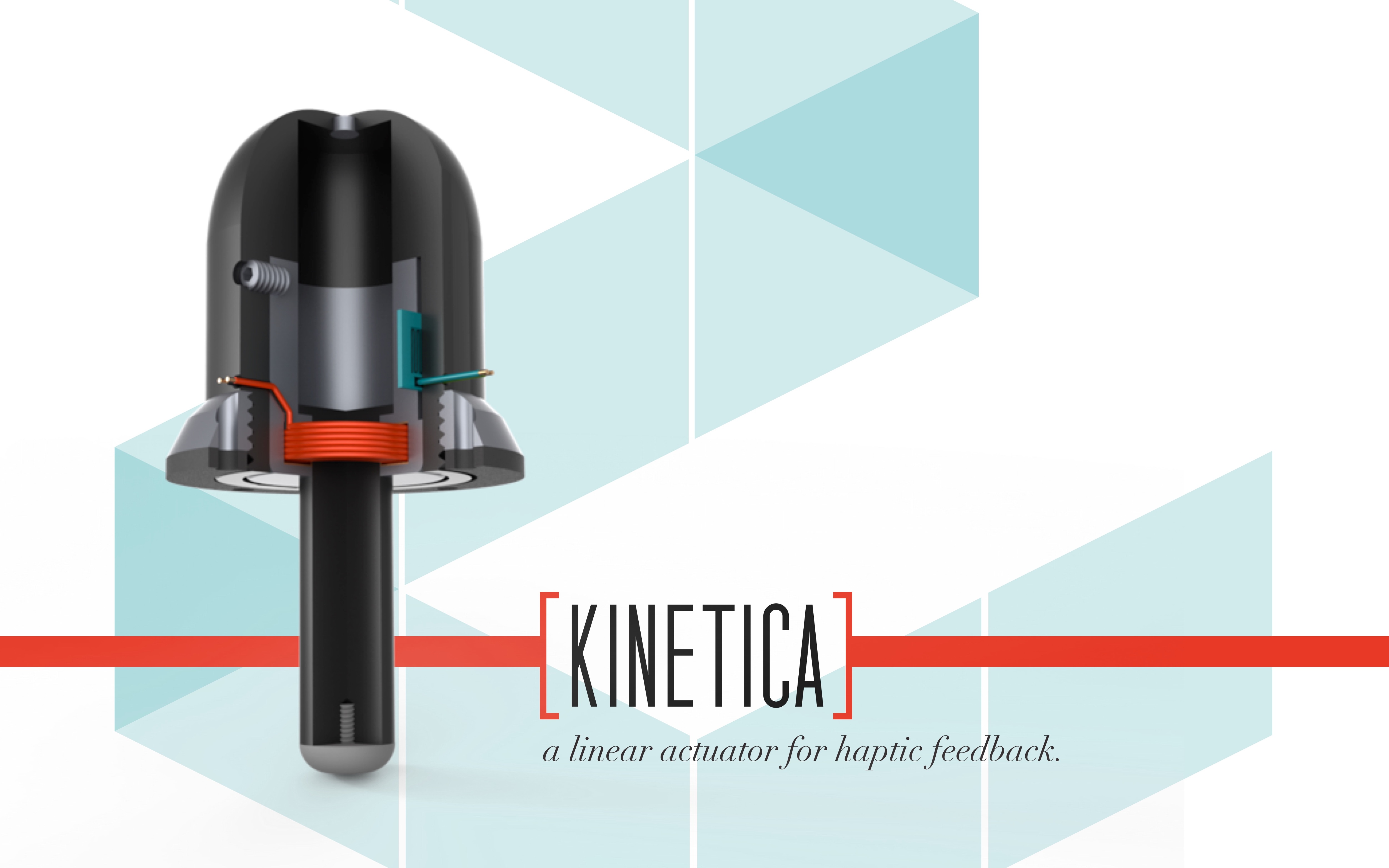 Kinetica is a linear actuator designed to provide sensory feedback to upper limb amputees who have undergone Targeted Sensory Reinnervation Surgery. The actuator head pushes on the patient's skin, proportional to the force applied by the prosthesis. This stimulates the nerve ending, creating the touch sensation.